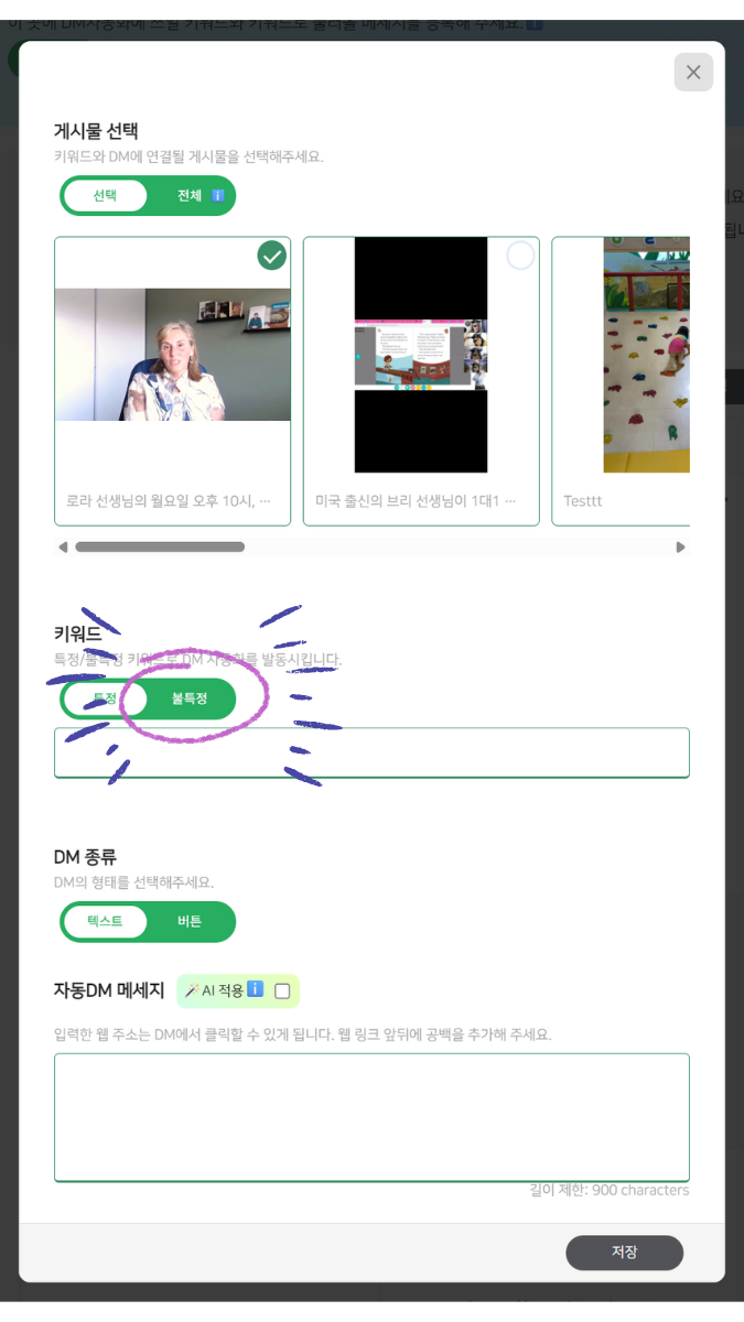 참고로, 키워드 기반 자동 DM을 사용하는 경우에도: